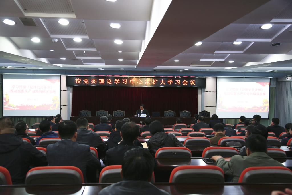 10月17日下午,乐鱼在第一报告厅召开校党委理论学习中心组扩大学习会议,专题学习中央新修订颁布的《中国共产党纪律处分条例》。党委书记潘福林主持会议并讲话。
