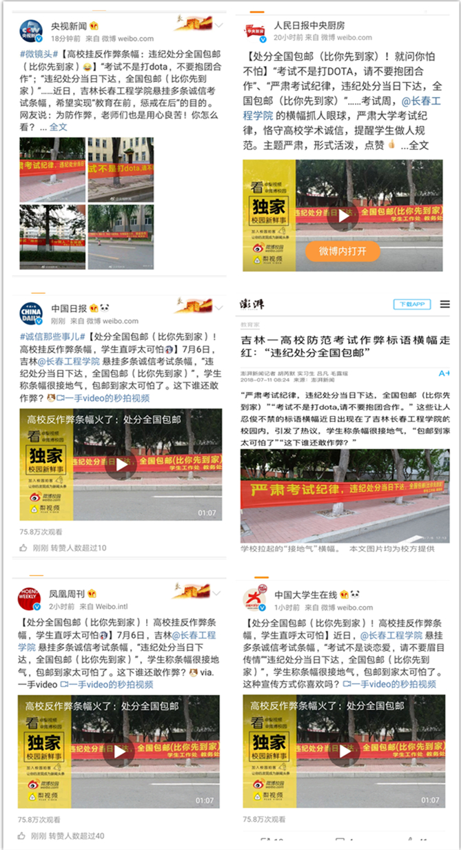 我校诚信考试条幅引爆各类媒体——网友纷纷点赞