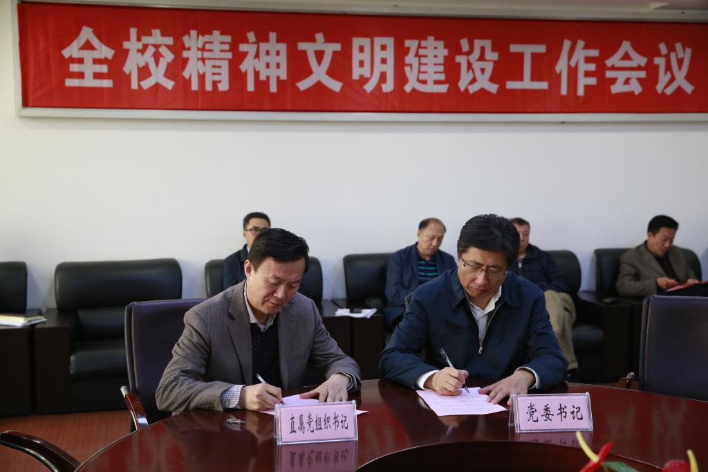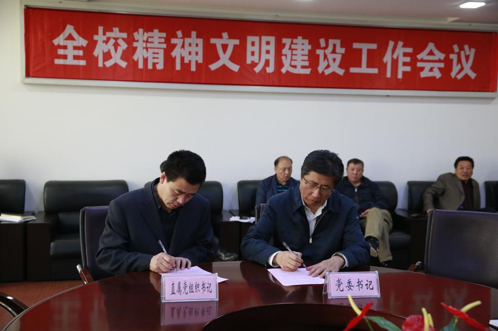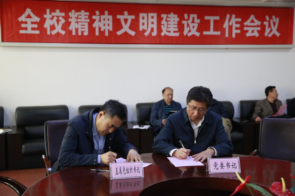 会上,乐鱼党委书记潘福林与直属党组织书记代表现场签订2018年精神文明建设工作责任书和意识形态工作责任书。
