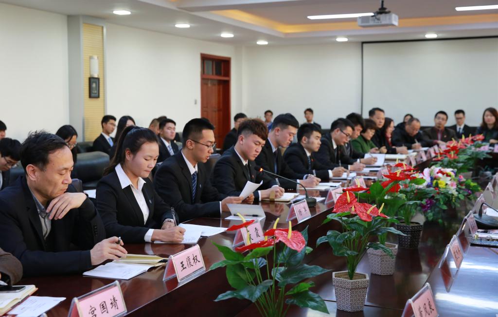 11 8 下午,乐鱼召开党的十九大精神学习宣讲座谈会,党委书记潘福林就学习贯彻党的十九大精神与我校学生代表座谈。会议由校党委副书记张冀男主持。
