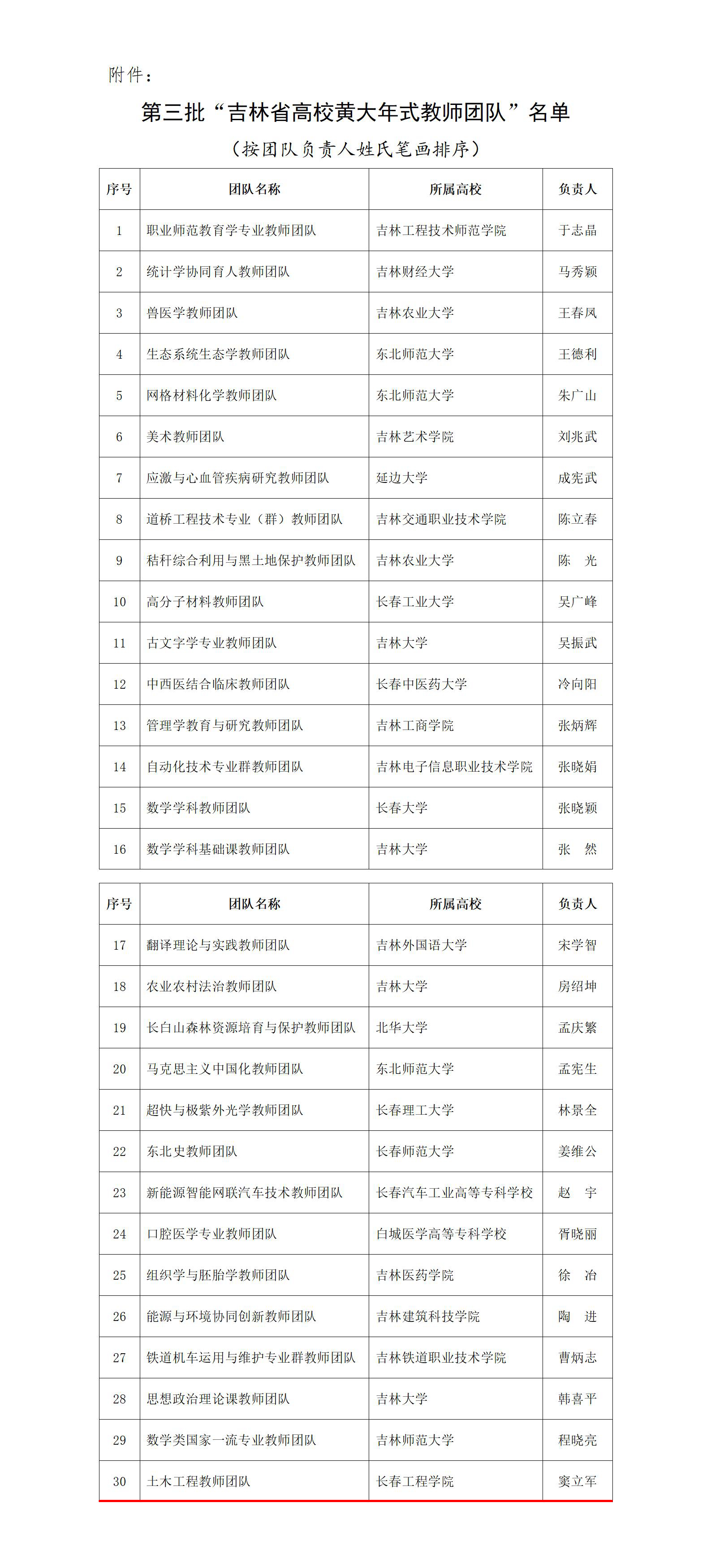 近日,吉林省教育厅开展第三批吉林省高校黄大年式教师团队创建活动,我校原副校长、土木工程学院窦立军教授负责的“土木工程教师团队”获批为“吉林省第三批高校黄大年式教师团队”。