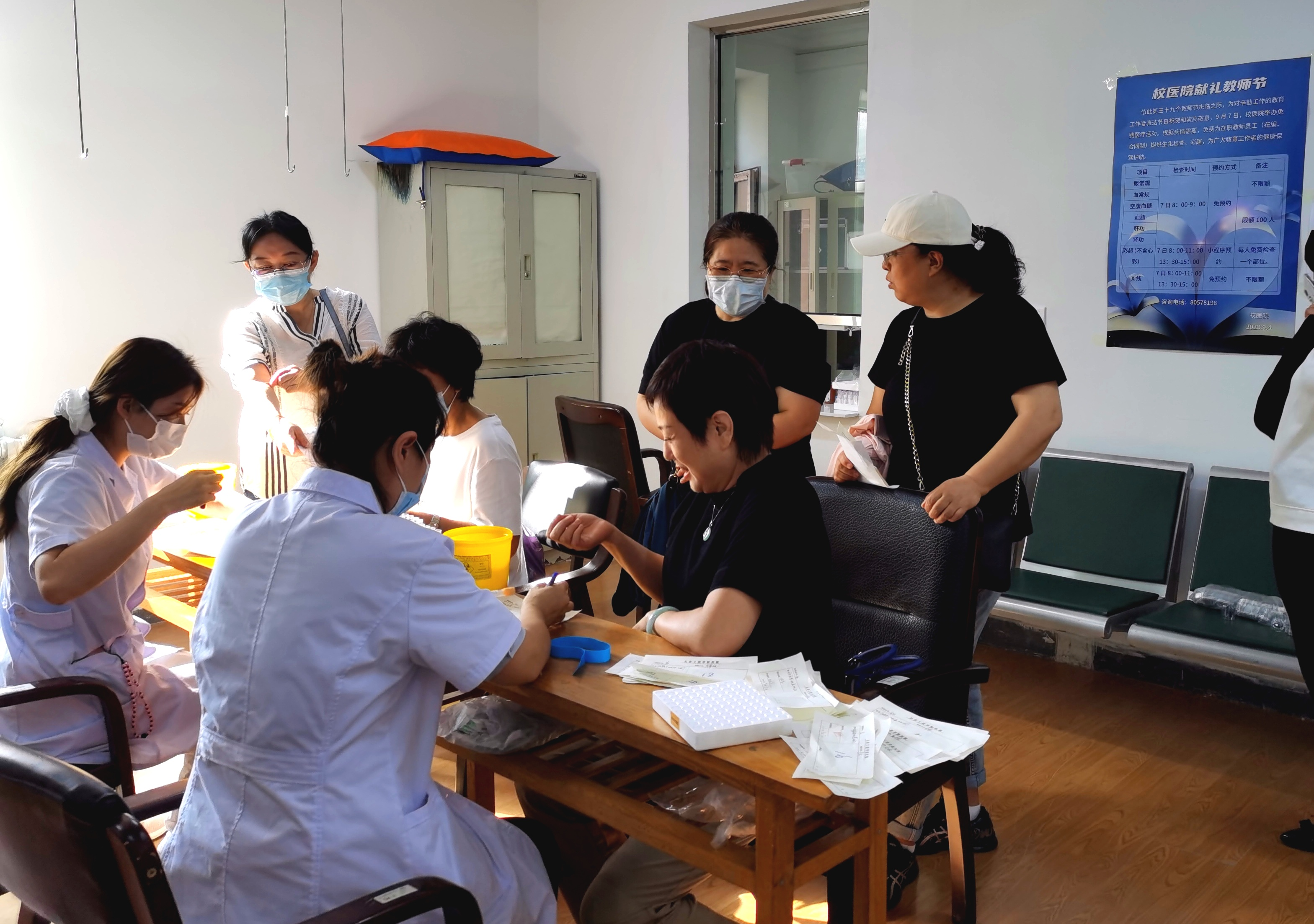 值此第三十九个教师节来临之际,为对辛勤工作的教育工作者表达节日祝贺和崇高敬意,9月7日,校医院为教职员工举办了免费医疗活动。