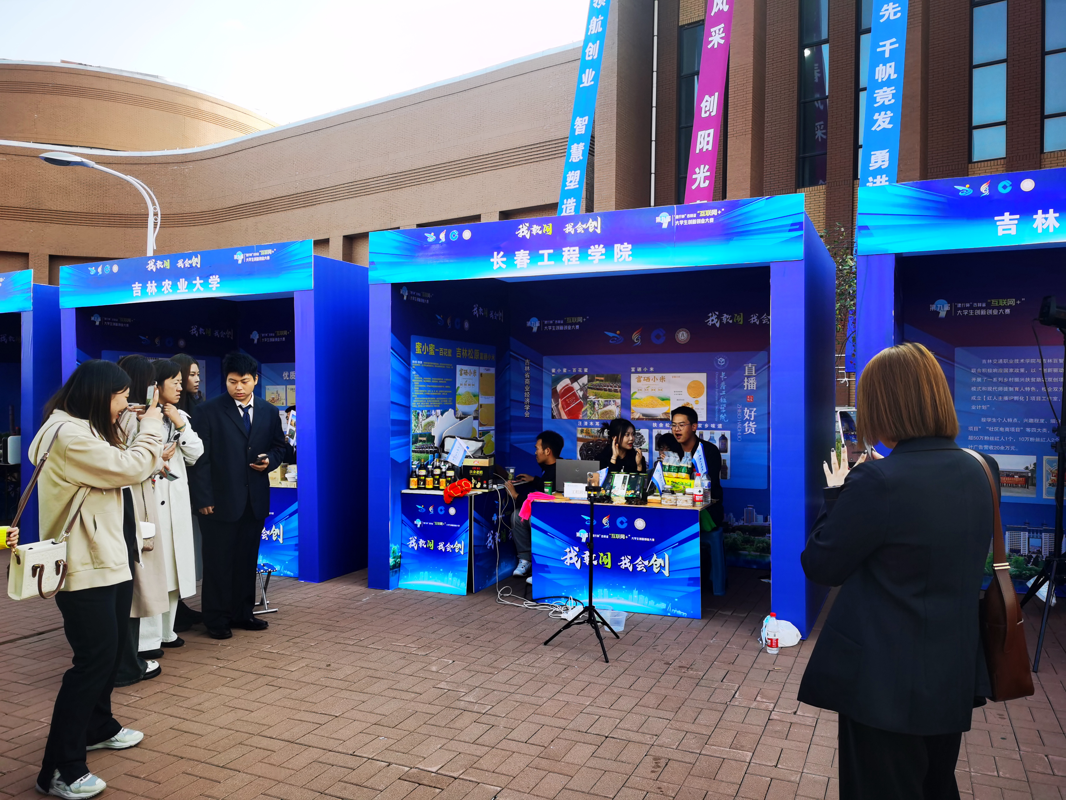 在吉林省大学生创新创业成果展上,我校优选学生创新创业成果,集中展示了机械工程、土木工程、电气工程、能源动力工程、机器人工程等学科方向的大学生科技创新作品;在吉林省高校服务“一主六双”高质量发展战略成果展上,我校遴选了土木、水利、电力等优势特色学科服务地方经济高质量发展的三个典型案例,充分展示我校聚焦产业发展,培养益地人才,强化应用导向,研发益地项目,瞄准吉林需求,提供益地服务的办学定位和发展理念;在大学生创客集市上,我校别具特色的珠宝首饰创意产品吸引着大量的与会师生前来选购,在我校的直播带货现场,学生以自信的表现、专业的素养、活泼的氛围、流畅的表达,展示了长工程学子良好的精神风貌。
