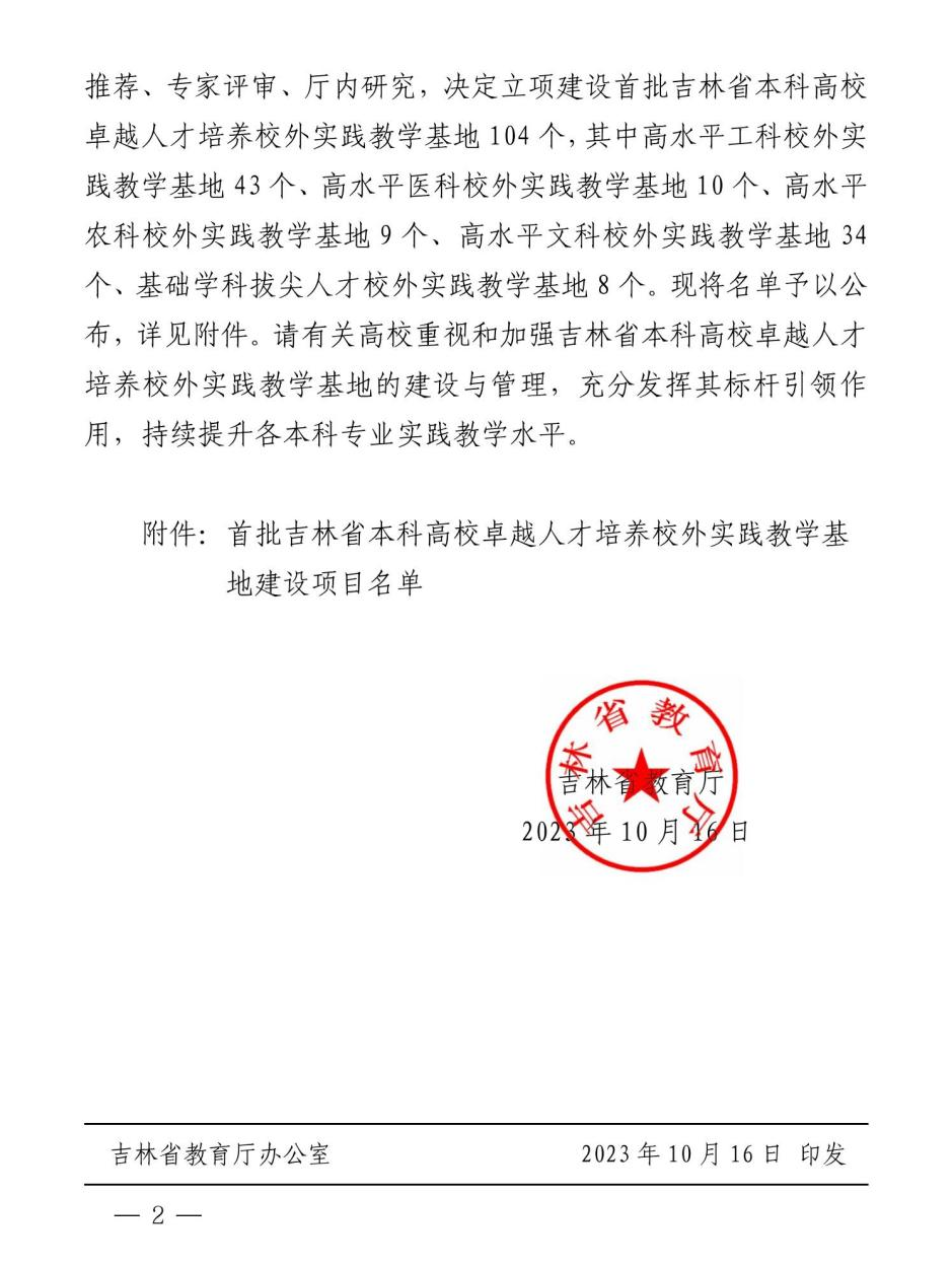 我校获批2个首批吉林省本科高校卓越人才培养校外实践教学基地