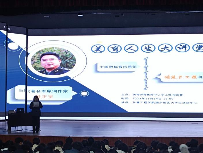 以美育人,入耳入心。11月14日,由乐鱼美育劳育教育中心、学生工作处、团委共同主办的美育人生大讲堂活动在湖东校区大学生活动中心举办。我校校友、特聘美育名师、当代著名军旅词作家聂正罡作为主讲人,讲述了他关于词曲创作的心路历程,总结分享了创作方法。活动由美育劳育教育中心主任荀洪梅主持。