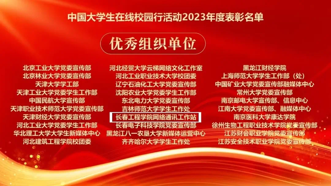 近日,2023年度中国大学生在线校网通站及校园行活动优秀名单出炉,我校师生荣获佳绩。乐鱼荣获“优秀校网通站”称号、我校学生工作处荣获“优秀组织单位”称号、校网通站指导教师王壹荣获“校网通优秀指导教师”称号、校网通站站长陈一鸣荣获“优秀校园媒体人”称号。