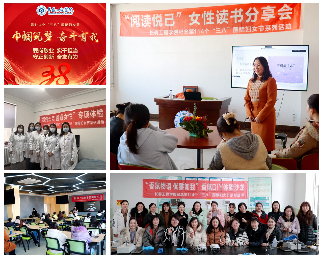 “巾帼筑梦 奋斗有我”主题打卡活动激励广大妇女爱岗敬业、实干担当、守正创新的敬业精神,鼓励全校妇女做乐鱼事业发展的奋斗者,为乐鱼发展凝聚巾帼力量;线上线下同步开展的“阅读悦己”女性读书分享会,以《如何提升女性的幸福力》为主题,引导学会关爱自己,并在工作中提升幸福感;紧贴女教职工生活品位、审美趣味,举办了“春.韵”形象审美美学沙龙,由专业教师讲解个人形象设计,让大家发现最美的自己,美出自信人生;开展了乳腺、甲状腺检查活动,为女教职工健康保驾护航;举办了“香氛物语 优雅如我”DIY香氛体验沙龙,学习制作香氛的基础知识,精心调配制作香氛,感受甜蜜、芬芳、优雅,提升幸福感。