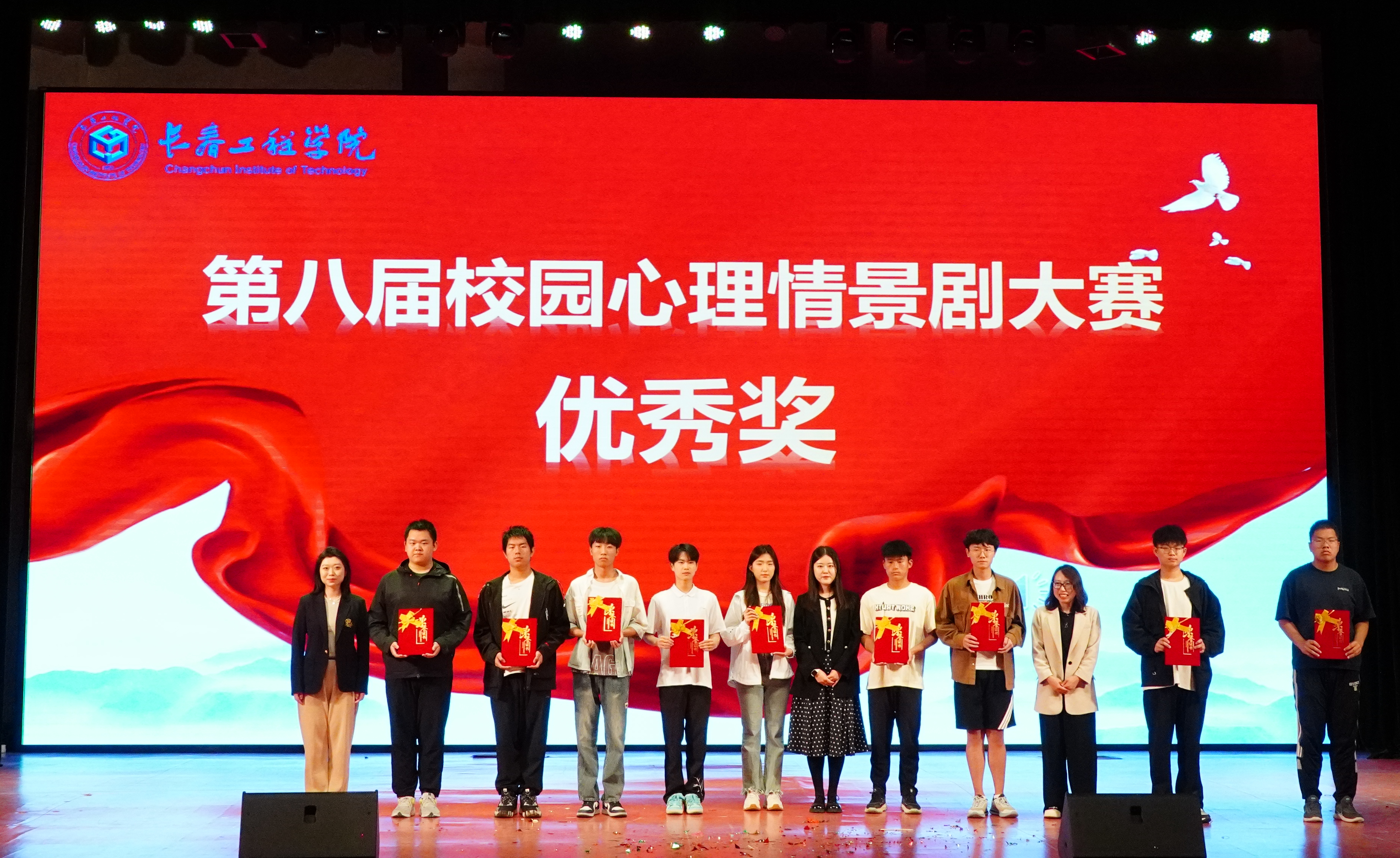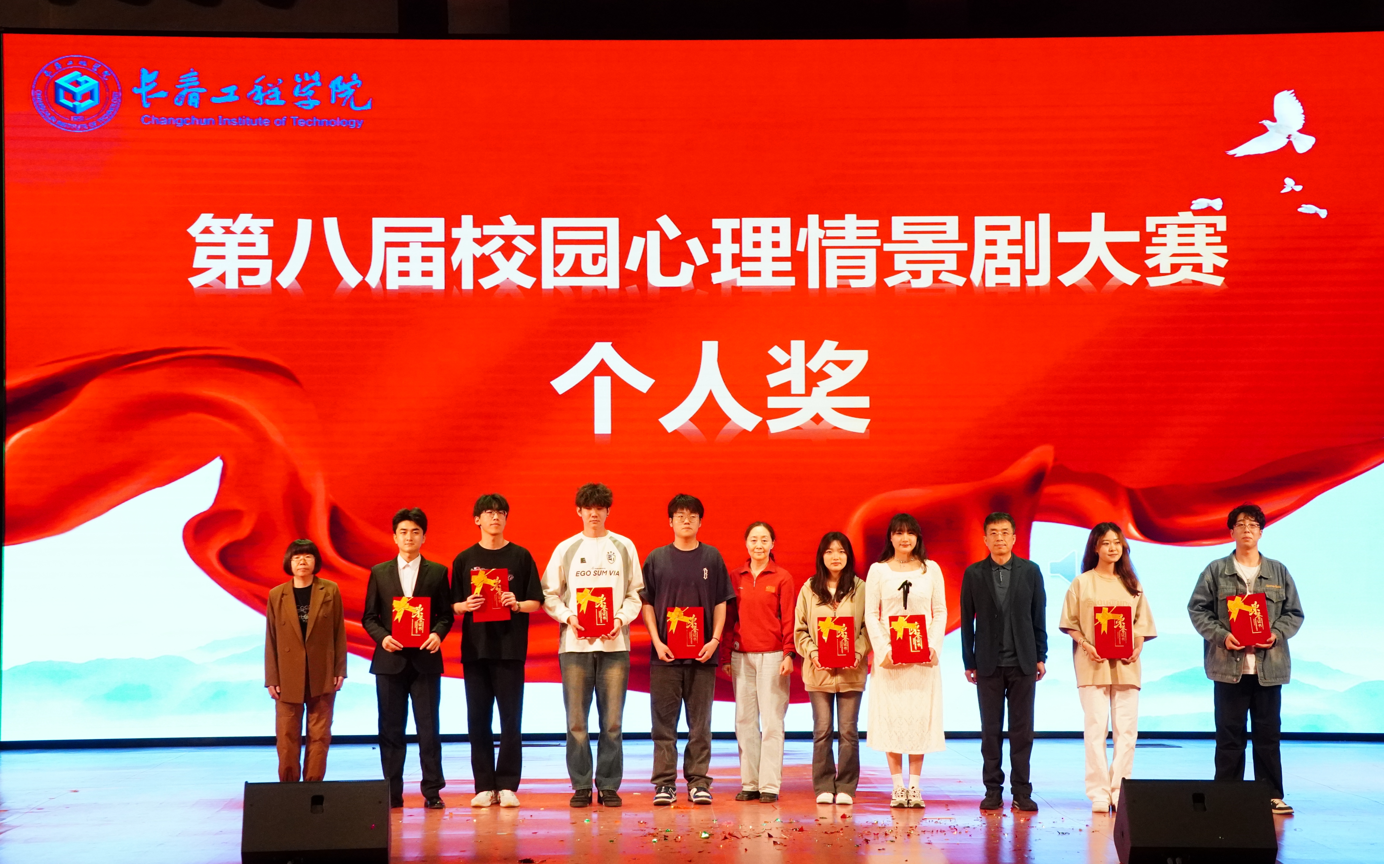 本次心理剧大赛的剧目均取材于现实生活,涉及大学生的自我认知、社交关系、职业生涯发展等方面常见的心理困境。同学们通过生动的演绎和细腻的表演,将心理情景剧中的人物形象和情感变化呈现得栩栩如生,展现了同学们的创作能力和艺术才华,更传递了积极面对生活挑战、不断寻求自我成长的坚定信念。