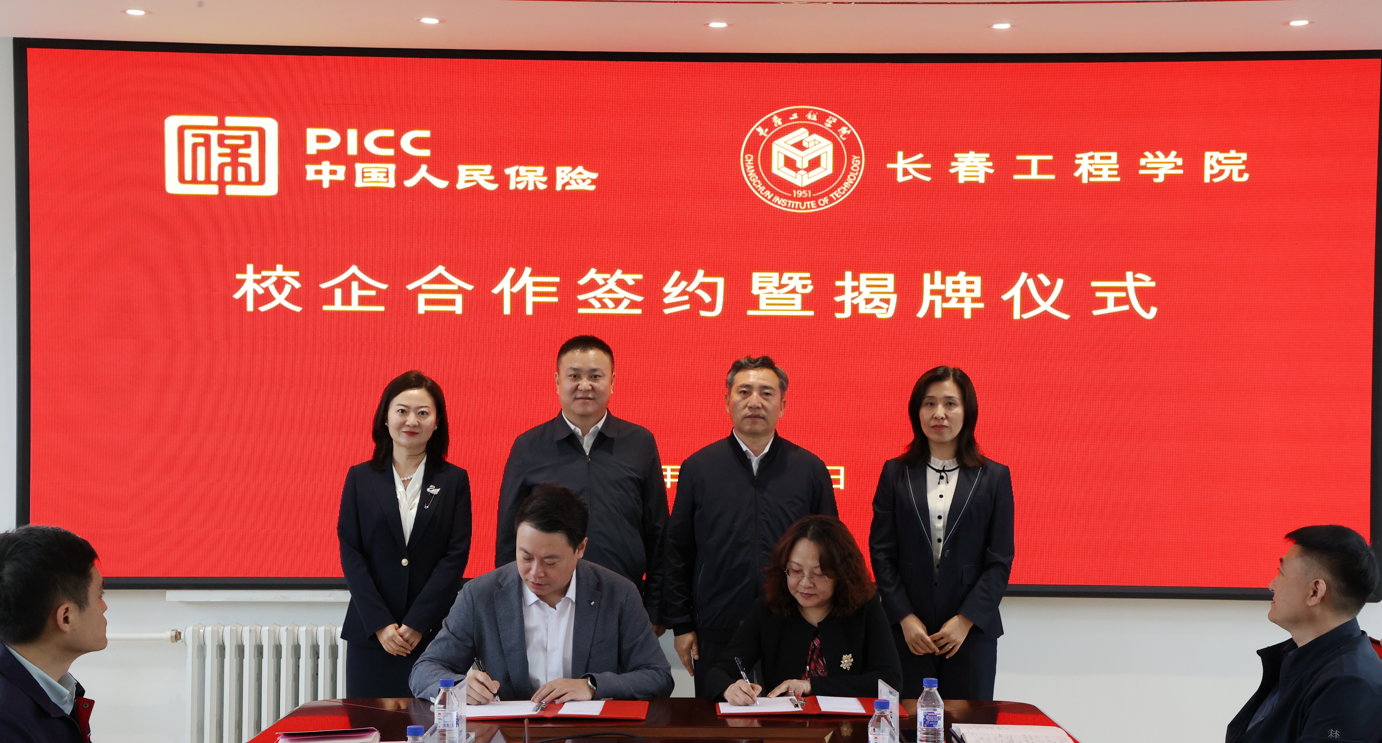中国人民财产保险股份有限公司长春市分公司总经理助理李擎和我校校友联络与社会合作处处长时红梅代表双方签订了合作共建协议。