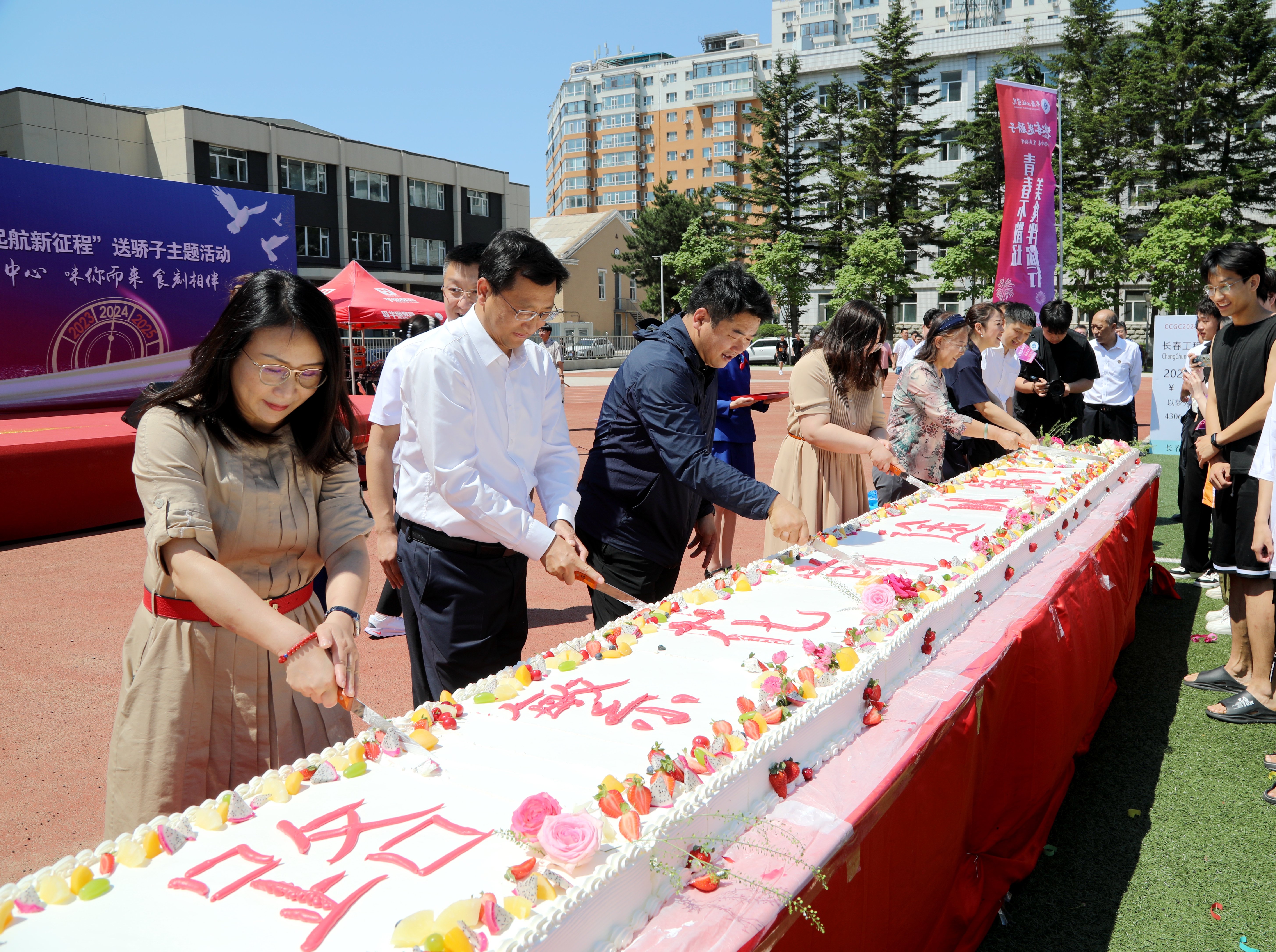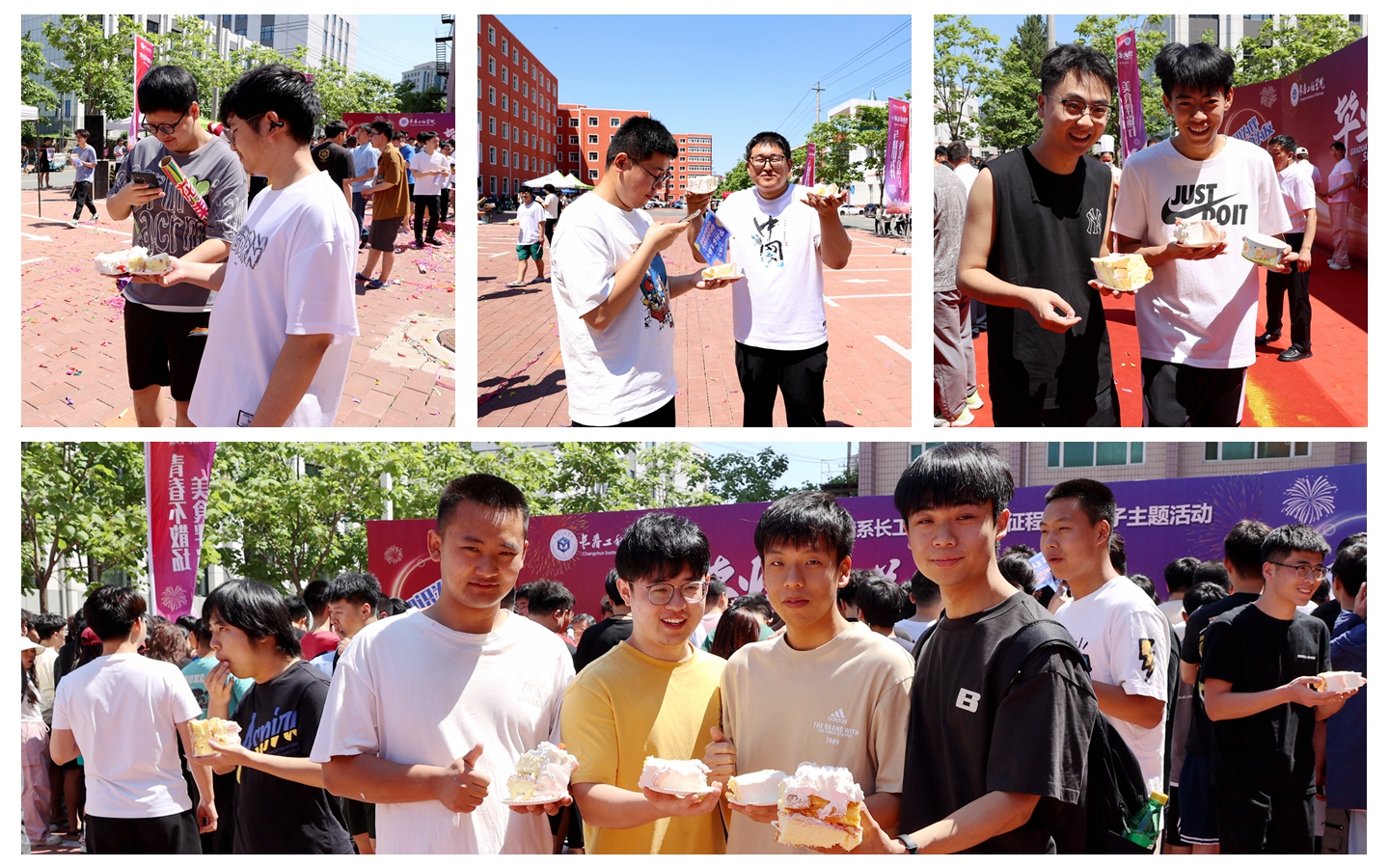 现场举行了洒金仪式,乐鱼领导、各学院领导洒下金箔覆上条幅,“祝骄子一路繁花 前途似锦!”的温馨祝福也在阳光下熠熠生辉。饮食服务中心为毕业生们特别定制了长达10米的蛋糕,乐鱼领导、各学院领导亲自为同学们切分了蛋糕,希望大家在今后的人生旅程里步步“糕”。