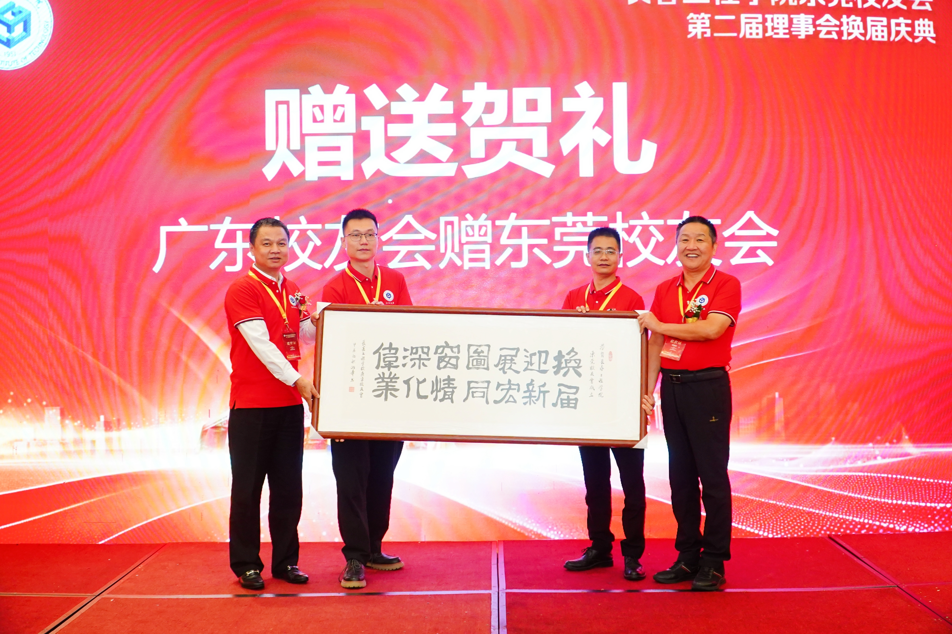 广东校友会会长胡庭松、副会长刘志坚代表广东校友会向东莞校友会赠送了精心准备的礼物,展现出他们对东莞校友会的深情厚谊,表达了对东莞校友会紧密相连的深深牵绊和共同成长的使命。