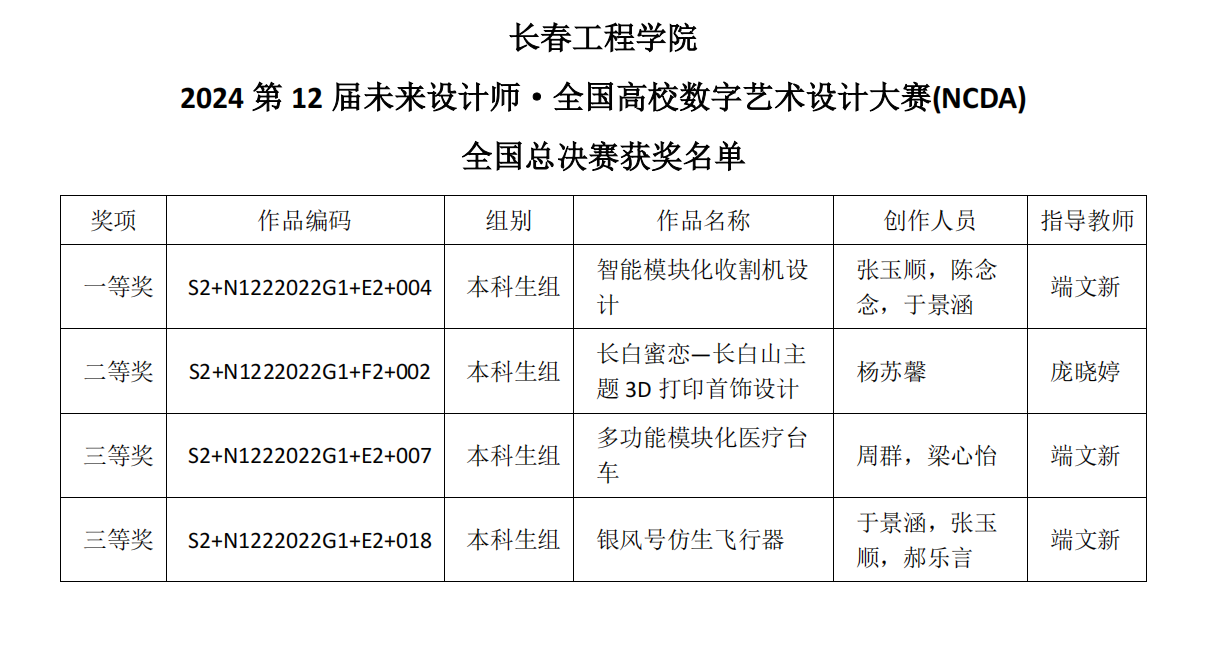 近日,第12届未来设计师•全国高校数字艺术设计大赛(NCDA)获奖名单正式公布,我校艺术设计学院学生作品在激烈的竞争中脱颖而出,喜获国家级一等奖1项、二等奖1项、三等奖2项;省级一等奖5项、二等奖11项、三等奖9项;艺术设计学院教师端文新、庞晓婷获全国“优秀指导教师”荣誉称号;我校获省级“优秀组织奖”荣誉称号。