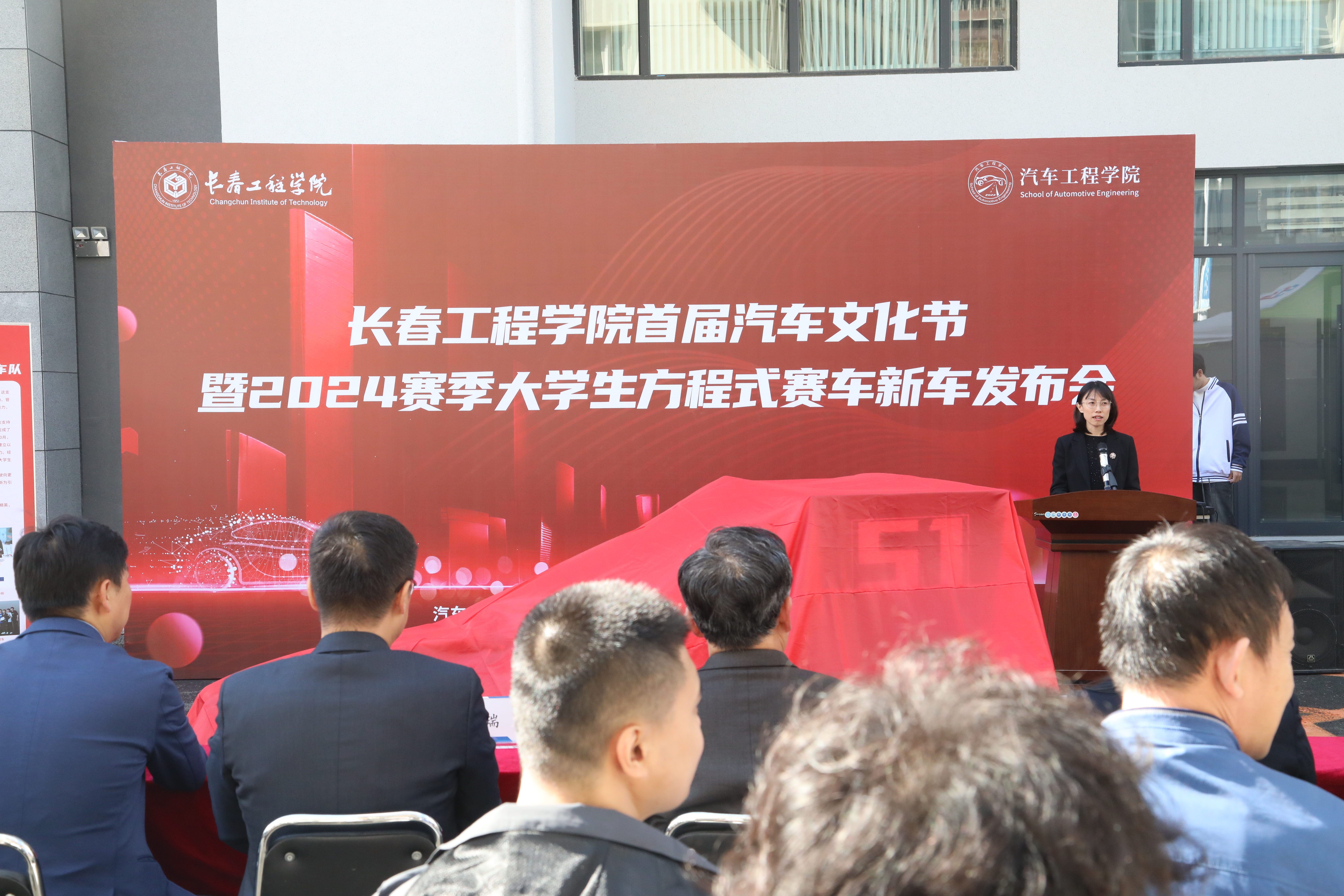 刘兆国副书记为新车揭幕,并为即将出征的2024中国方程式赛车大赛的车队授旗。