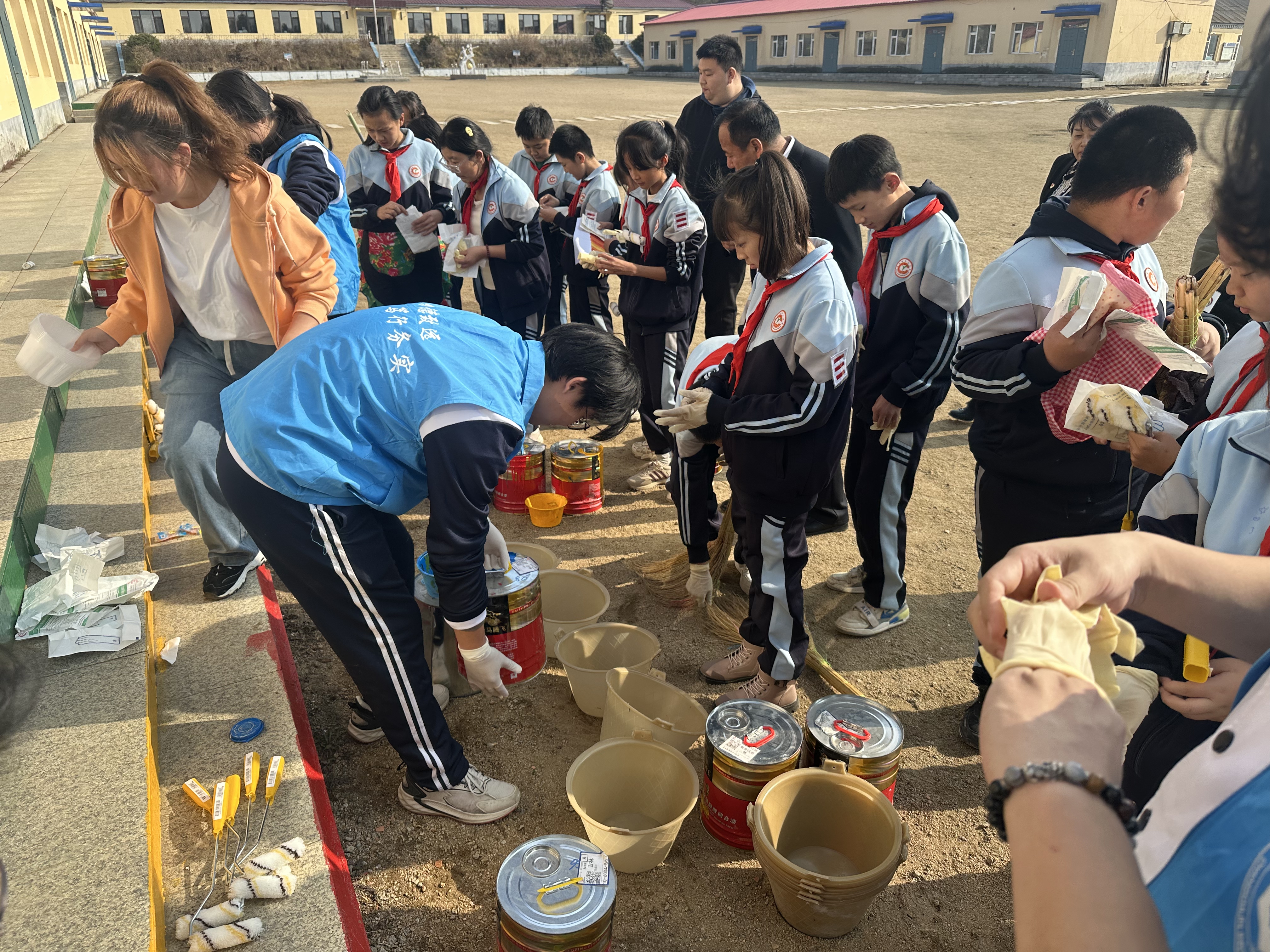缸窑中心小学的学生们在艺术设计学院师生的悉心指导下,在校园指定区域绘制出绚丽的彩虹图案,寓意着为孩子们铺设通往梦想与希望的多彩之路。