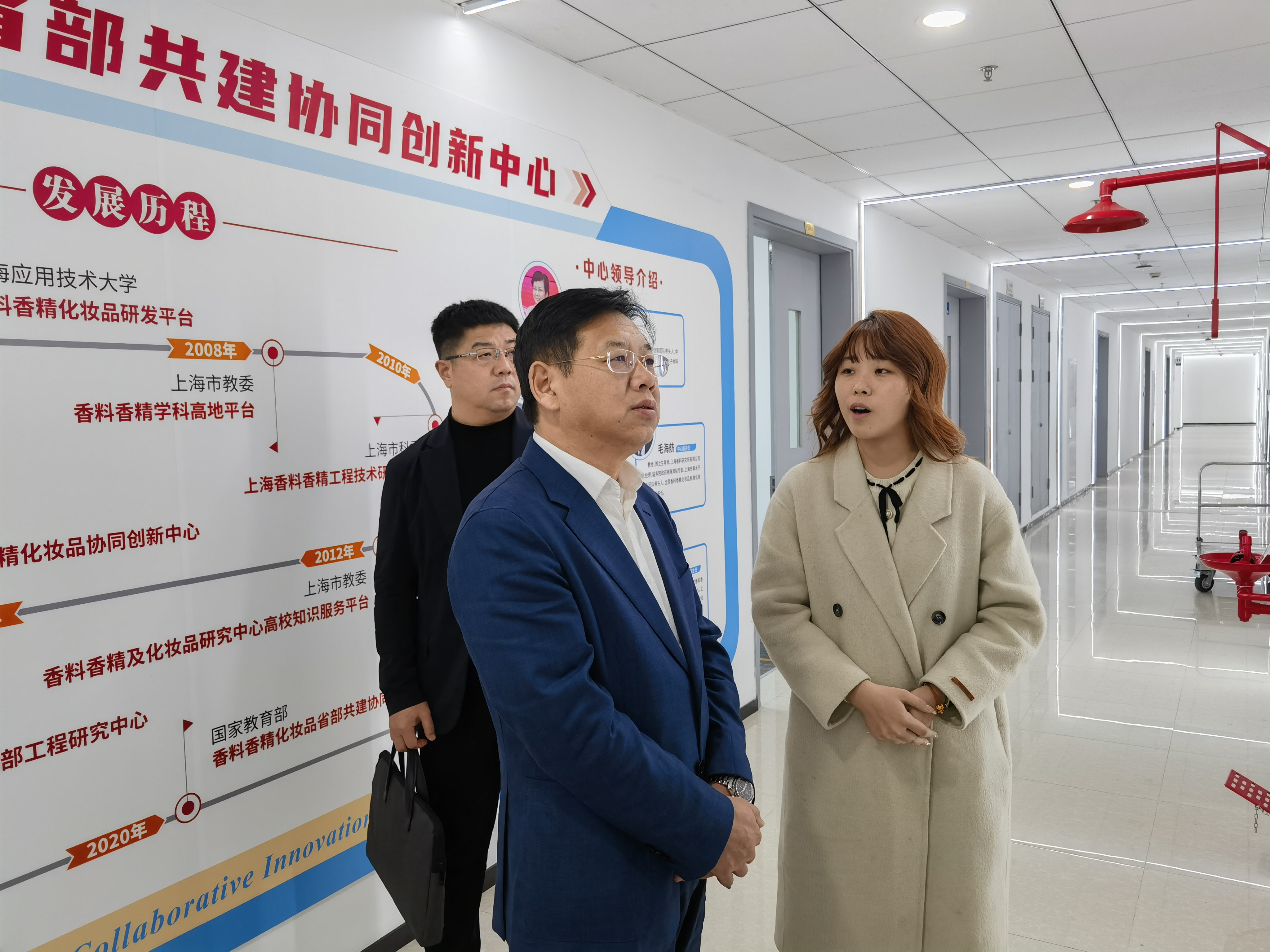 座谈会后,陈权书记一行实地考察了该校香料香精化妆品省部共建协同创新中心、虚拟交互教育创新中心。