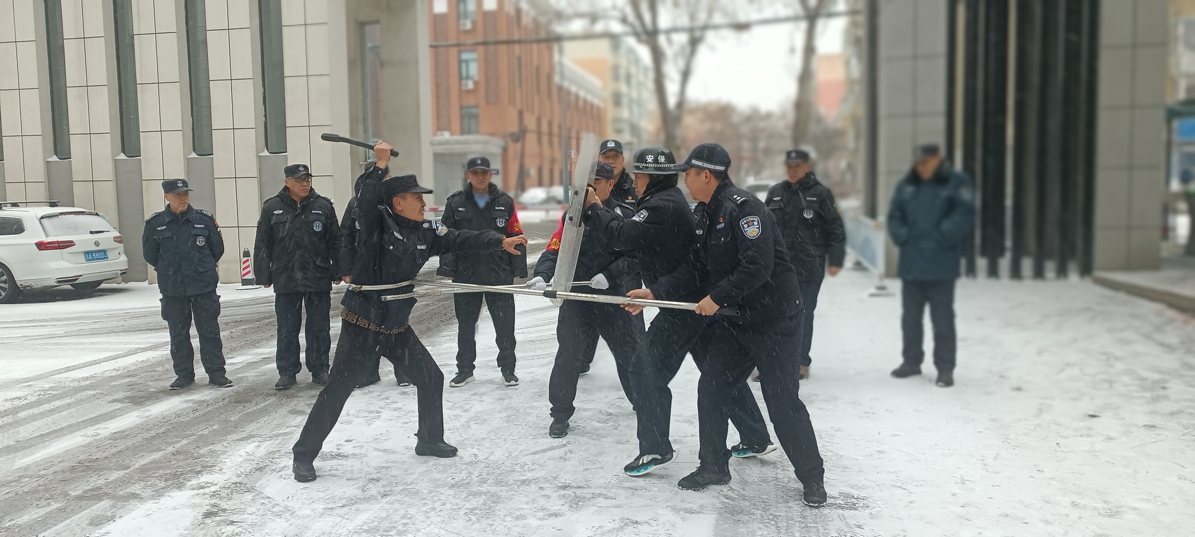 民警同志向我校安保人员充分展示了防暴盾牌、警棍、钢叉等警用装备的使用方法和功能,对反恐防暴知识和应对方法进行了详细讲解。我校安保人员亲自参与模拟演练,通过亲身体验进一步加深对反恐防暴知识的理解和掌握。