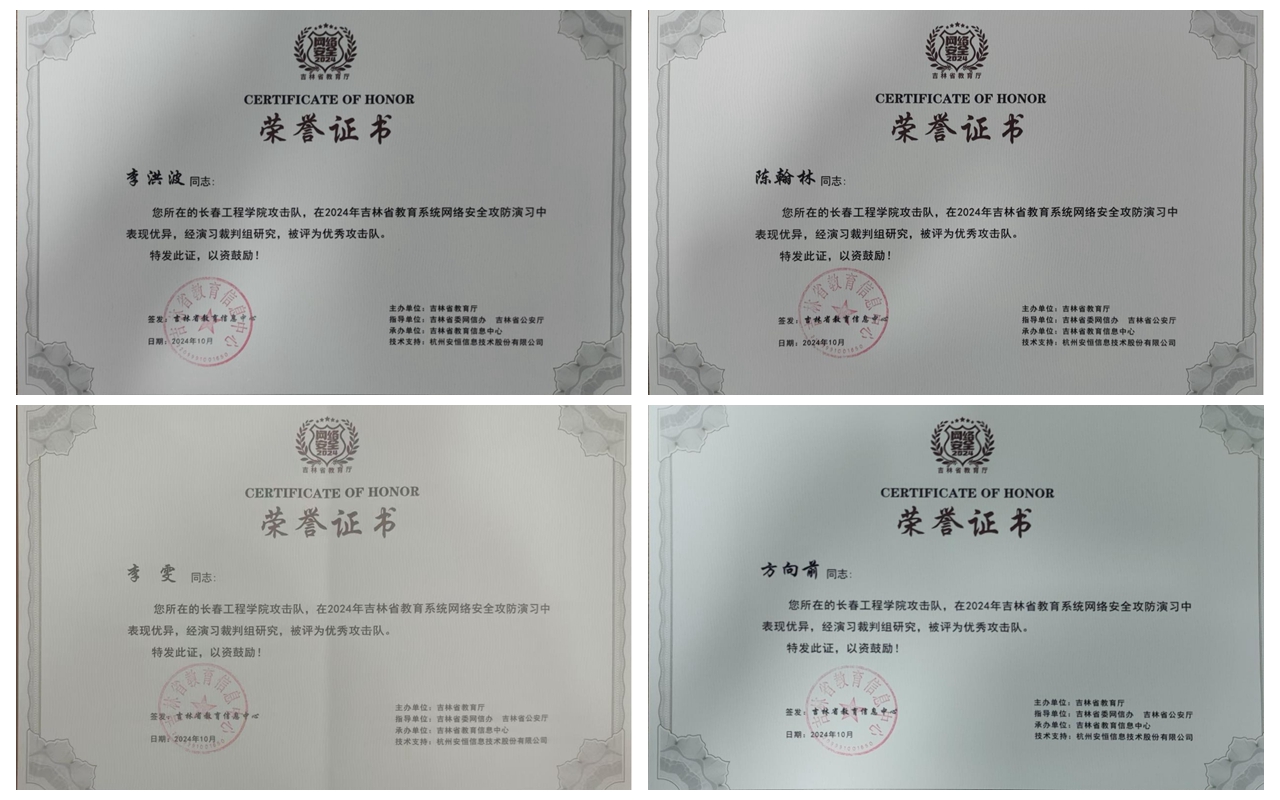 乐鱼获“2024年吉林省教育系统网络安全攻防演习优秀攻击队”荣誉