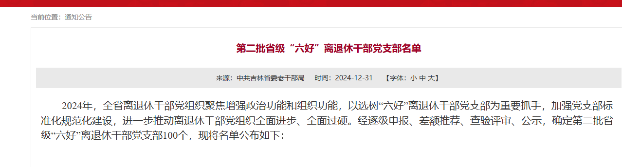 近日,中共吉林省委老干部局表彰了第二批全省“六好”离退休干部党支部,我校离退休党委退休第一党支部获评省级“六好”离退休干部党支部。