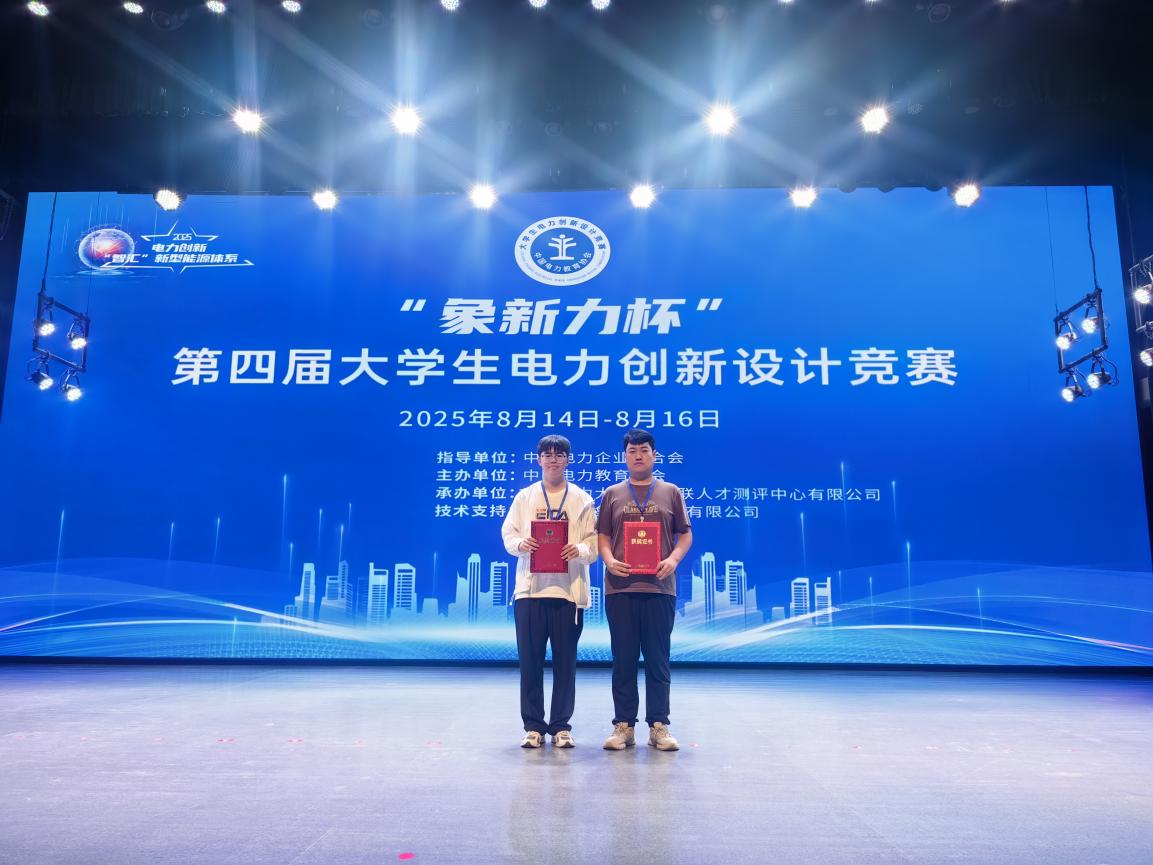 近日,由中国电力企业联合会指导、中国电力教育协会主办、东北电力大学承办的“象新力杯”第四届大学生电力创新设计竞赛全国总决赛在东北电力大学落下帷幕。经过激烈角逐,我校能源动力工程学院黄淇等同学获工程设计赛道一等奖,刘涌昌等同学获工程设计赛道三等奖,能源动力工程学院教师李岩、刘璐荣获“优秀指导教师”荣誉称号。