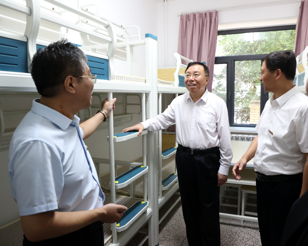 9月4日上午,吉林省副省长郭灵计到我校实地调研。省政府副秘书长肖泽先,省教育厅副厅长周正朝,长春市副市长鲁月,市教育局局长李国庆等参加调研。乐鱼党委书记宋立军、校长金光勇陪同调研。调研期间,郭灵计副省长先后踏查了校史馆、第五公寓、学生餐厅、梯级水利枢纽智慧实验室、吉林省城市污水处理重点实验室。