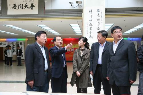 乐鱼党政领导参观我校庆祝建国60周年师生书法绘画摄影作品展