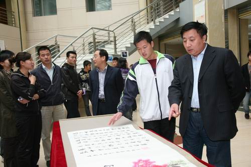 9月26日上午,党委书记李春生、副院长任玉珊、党委副书记吴占军等乐鱼党政领导来到展厅,饶有兴致地观看了我校师生员工为庆祝建国60周年创作的书法、绘画、摄影作品。他们在工作人员的引导下,在作品前驻足,了解我校师生员工的作品创作过程,对我校师生员工通过一幅幅作品抒发的爱国之情给予了很高评价。