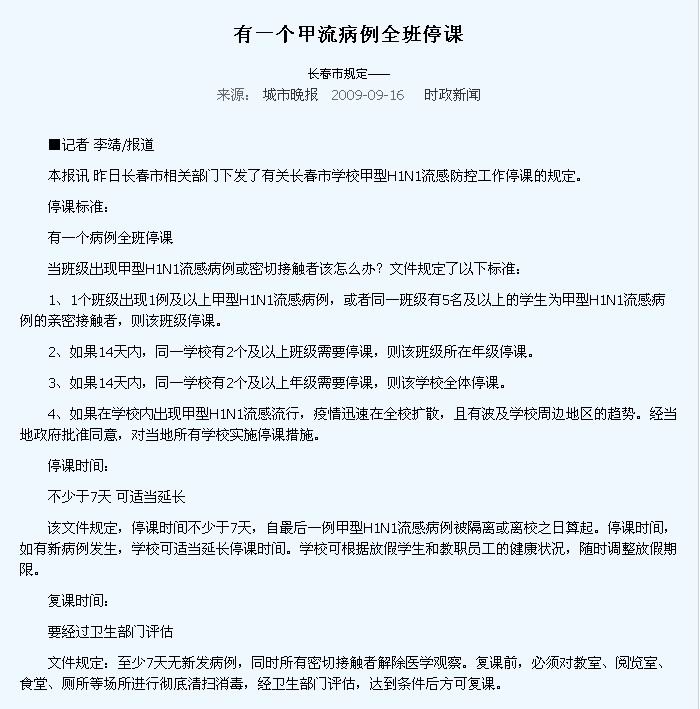 媒体链接:长春市甲型H1N1流感防控工作动态