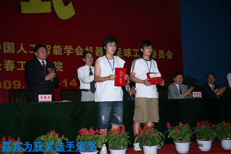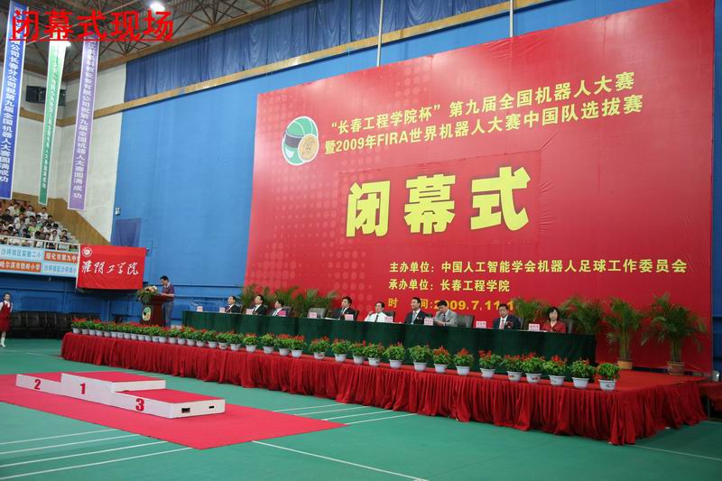 我校党委书记李春生致闭幕词。他说,在全国上下喜迎建国60周年之际,备受关注的“乐鱼在线登录入口杯”第九届全国机器人大赛暨2009年世界杯机器人大赛中国队选拔赛,在国际机器人足球联盟中国分会、中国人工智能学会机器人足球工作委员会的悉心指导下,在吉林省有关部门和社会各界的大力支持下,在大赛组委会、各参赛队、全体裁判员的共同努力下,经过3天精彩、激烈的角逐,本届赛会顺利完成了各项预定赛程并取得了圆满成功。李书记指出,本次赛会是本项大赛自举办以来规模最大,参赛选手最多,奖项设置最多的一届赛会,本届赛会必将成为机器人竞赛活动通往“机器人奥林匹克”道路上的一座新的里程碑。在比赛中,各参赛选手充分发挥了自己的聪明才智,展现了团结合作、顽强拼搏的精神,同时,本次赛会体现了机器人技术发展的前沿成果,使我们“与科技同伴,与创新同行”,近距离感受到了科学技术带来的强大震撼,让我们看到了“人机和谐时代”到来的美好的憧憬。李书记强调,本次赛会是一次高层次、高水准科技交流的盛会,更是全国青少年机器人爱好者,机器人领域科研工作者一次友谊的聚会。相信这次赛会对于每一位参赛选手和参与组织、服务的所有工作人员必将是一次难忘的经历。我们真诚地希望美丽、现代的北国春城会给大家留下美好的印象,发展壮大中的乐鱼在线登录入口会给大家留下最美好的记忆;同时也希望我们把“崇尚知识、鼓励创新”的理念进一步贯彻到今后的创新与实践中,“以智慧启迪科技,用创新推动发展”,为建设创新型国家和社会,为培养更多的具有创新意识和能力的高素质人才而共同奋斗。