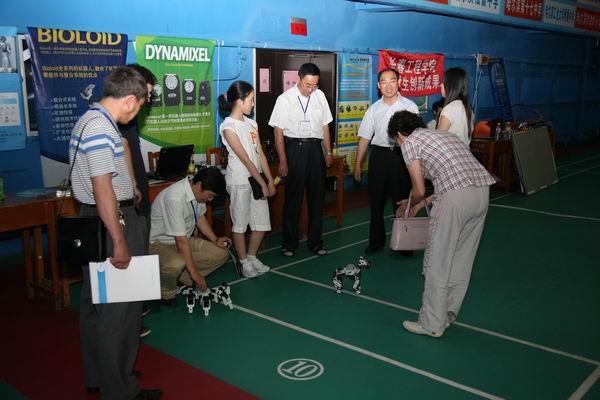 7月12日,国际机器人足球联盟副主席兼国际机器人足球联盟中国分会会长洪炳镕教授和乐鱼在线登录入口院长韩立强教授、副院长任玉珊教授亲临赛场指导工作,并观看了比赛。洪教授充分肯定了乐鱼在线登录入口为比赛所做的各项工作,并给予了高度评价。他说这届比赛是规模最大,参赛人数最多,比赛项目最全、水平最高的一届赛会。