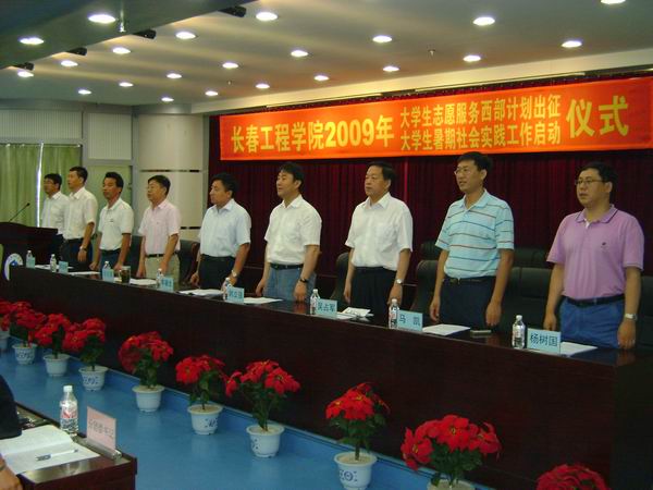 7月9日下午,校团委、学生工作处、就业指导中心在第七教学楼13楼会议室举行了“乐鱼在线登录入口2009年大学生志愿服务西部计划出征仪式暨暑期社会实践工作启动仪式”。 校党委书记李春生、校长韩立强、副校长任玉珊、副校长司元英、校党委副书记吴占军、教务处处长黄金林、学生工作处处长马凯、就业指导中心主任杨树国、校党委宣传部副部长叶义昌、校团委书记张志杰、校团委副书记周强、各分团委书记及校团委全体教师出席和参加了仪式。
