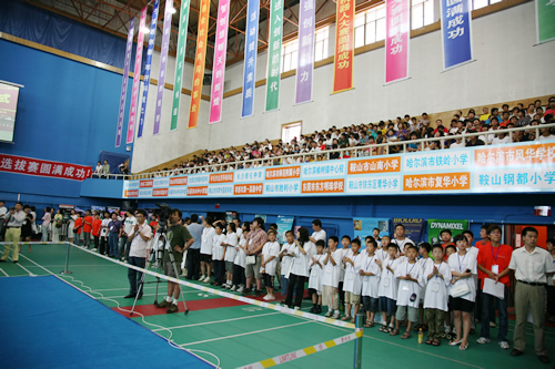 在这清爽的初夏时节,承载这对科学技术的追求,对超越梦想的渴望,来自全国各地的青少年朋友们,怀揣着共同的愿望和目标,不远千里,相聚吉林、相聚长春、相聚“第九届全国机器人大赛”。7月11日上午9:00,由我校冠名并承办的第九届全国机器人大赛暨2009年FIRA世界杯机器人大赛中国队选拔赛在南校区体育馆隆重开幕。出席开幕式的领导和来宾有:国际机器人足球联盟主席、韩国高等技术研究院金钟焕教授,大会名誉主席、十一届全国政协常委、原吉林省副省长、吉林省科学技术协会主席刘淑莹,吉林省教育厅厅长卢连大,中国科学院院士、吉林大学博士生导师任露泉教授,中国人工智能学会理事长、世界工程组织联合会副主席钟义信教授,国家科学技术部高新司自动化处处长曹学军,大会执行主席、国际机器人足球联盟副主席、国际机器人足球联盟中国分会会长洪炳镕教授,吉林省教育厅副厅长战高峰,北京信息科技大乐鱼长杜林,吉林省科学技术协会副主席尹军,中国人工智能学会秘书长刘宏,韩国机器人足球联盟秘书长赵元兑,吉林省教育厅高等教育处处长靳国庆,北京信息科技大学副校长许晓革,中国农业银行长春培训学院副院长邹积强等。我校党委书记李春生、院长韩立强等乐鱼党政领导出席开幕式。来自全国42所高校、80支代表队,65所中小学、70个代表队的领导、教练和队员420余人参加了开幕式。开幕式由赛会组委会主席、我校任玉珊副院长主持。