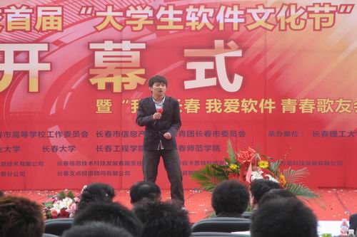 2009年5月16日上午10时,首届长春大学生软件文化节开幕式暨“我爱长春 我爱软件”青春歌友会在长春理工大学正式举行。我校党委副书记吴占军和电信学院、学工处、校团委主要领导以及电信学院、软件学院200余名同学到场参加本次活动。