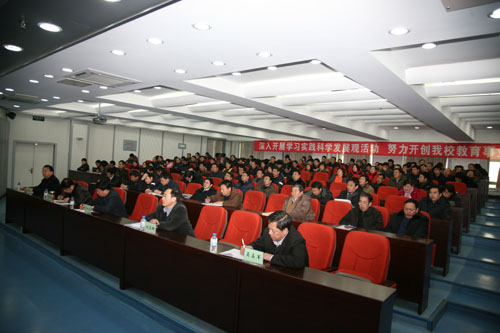 1月12日下午,我校邀请吉林省政法委副书记姜德志作 “学习实践科学发展观,加强反腐倡廉建设”报告。报告会由党委书记李春生主持。乐鱼党政领导,副科级以上干部,社科部部分教师,乐鱼学术委员会委员,省市区党代表、人大代表、政协委员,民主党派负责人,关工委领导以及人事、财务、资产等部门工作人员近二百人参加了报告会。