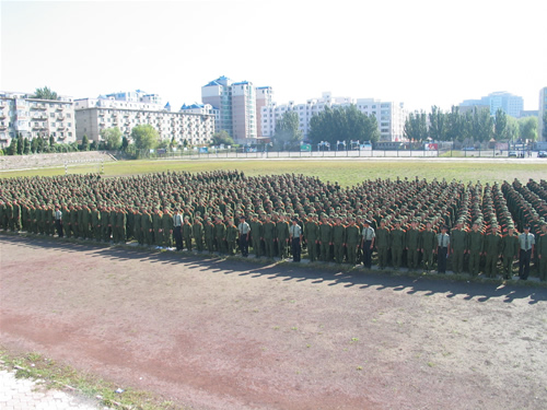 9月4日上午8时,我校2008级新生军训开营仪式在校体育场举行。校领导任玉珊副院长、吴占军副书记参加了开营仪式。在开营仪式上,校领导激励新生们要艰苦训练,磨炼意志,学会适应,懂得坚持,学习军人的风范,激励自己去做好每一件事。2008级新生们精神抖擞,整装待发,以良好的精神风貌迎接新的大学生活。