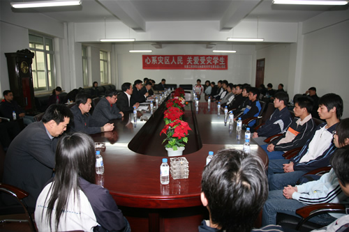 5月19日下午,党委书记李春生、副院长司元英、副书记吴占军及党办、院办、工会、学工处、宣传部等职能部门人员和我院地震灾区学生代表进行座谈。校领导详细询问在座同学是否与家人联系上,家里亲人的情况,李书记代表乐鱼表达了对家在地震灾区的学生的关怀.他对这些学生提出三点希望:一、要相信党和政府领导全国人民一定能战胜这一空前的灾难;二、希望家里受灾的学生要学会坚强,以坚强的精神度过难关;三、希望同学们明确自己的任务,摆脱干扰,学好知识,为重建家园储备本领。座谈会上,李书记代表党委和乐鱼向受灾学生发放了爱心捐款。