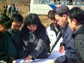 通过对现场地形地貌的实地考察,同学们思如泉涌,纷纷提出自己的设计思路和设计方案,并对甲方进行讲解,同时对甲方提出的建设要求做了详细的记录,老师则进行现场指导。通过这种现场设计、现场指导的教学方式,同学们对设计题目更感兴趣,对拟建项目更加了解,对自己的设计方案充满了信心。