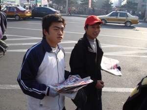 土木学院大学生义务卖报纸捐助贫困大学生