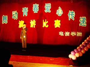 比赛分命题演讲与即兴演讲两部分。比赛开始后选手们都有很出色的发挥,充分的展示了语言的特色,用简单而又华丽的语言诠释了主题。其中李琦.张绍渊等同学妙语连珠,赢得了老师与同学们的掌声。即兴演讲更是体现了选手们良好的应变能力。比赛选手赛出了电信学院的风格,充分展现了电信学院学生良好的精神面貌。之后徐文杰教授对比赛进行了精彩的点评。