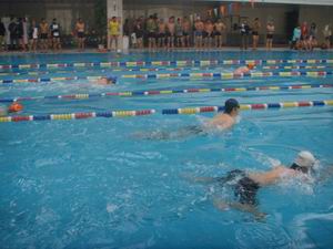 虽是深秋时节,天气寒冷,参赛队员却是精神抖擞。首先进行的是女子50米蛙泳比赛。巾帼不让须眉,看似娇弱的选手在水中却是英姿勃发。虽然途中个别选手因抽筋原因无奈退出比赛,但是她们顽强拼搏的精神却得到了全场观众的赞扬。经过一番激烈角逐,来自软件学院的杨梓嘉同学以50秒96的优异成绩取得这项比赛的第一名。接下来进行的男子50米蛙泳比赛更是精彩纷呈。在前半程的竞争中,选手们你争我夺,不分伯仲,只是在最后关头外语系的朱家骅同学展露锋芒,夺得第一名。