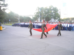 此次升旗仪式由机电学院党总支副书记李玉志主持。李书记向学生们强调了今天升旗仪式的重要意义,希望这天的升旗仪式能够成为大家生命中的一个永恒的记忆,能够时时刻刻唤起大家爱国、爱校的热情。