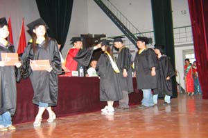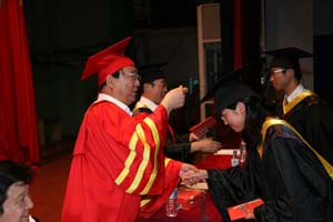 毕业典礼上,伴随着悠扬的乐曲,院长石曙光、副院长韩立强分别向获得学士学位的毕业生代表授予学位;与会领导向毕业生颁发毕业证书和各种荣誉证书。