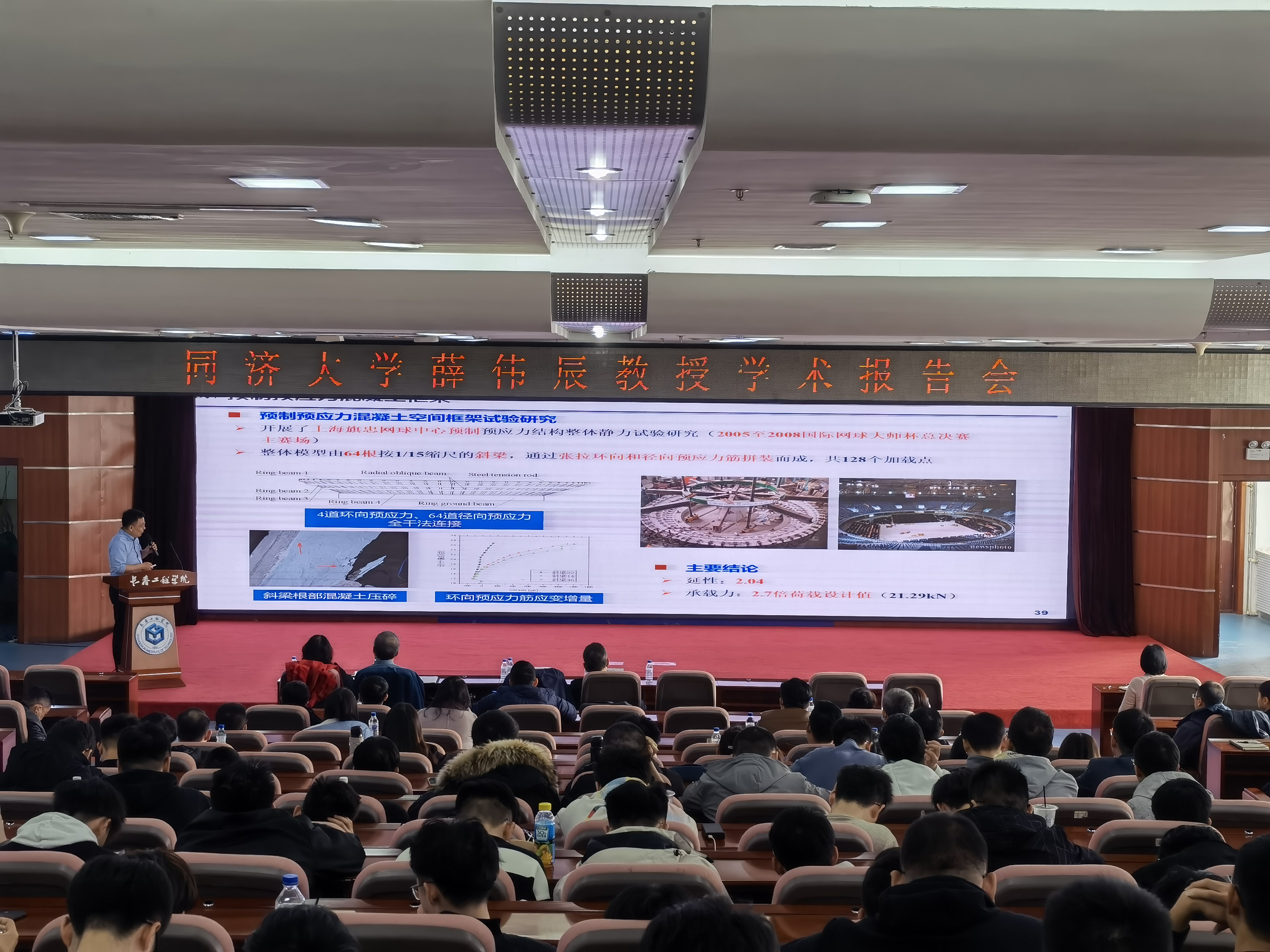 为拓宽学院师生在工业化建造和智能建造、装配式建筑技术方面的专业视野,使大家了解行业最新动态,掌握技术发展前沿,11月5日,同济大学薛伟辰教授应邀来我校作了题为《装配式混凝土结构体系研究、应用与规范编制》的学术报告。报告会在逸夫图书馆第三报告厅举行,由窦立军副校长主持,我校土木工程学院部分师生和省内高校、企业代表共计300余人参加了会议。