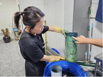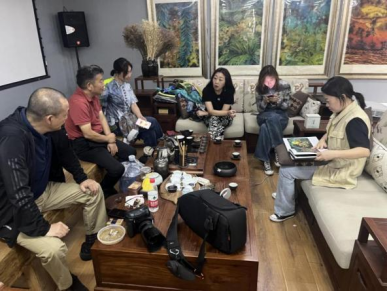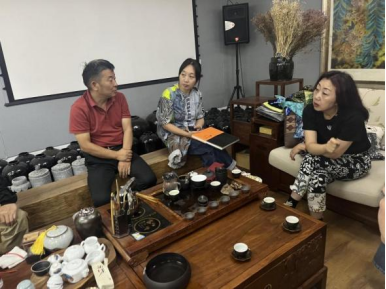 调研团队还饶有兴致的体验染缬创作过程,了解染料发酵、压榨、浸泡、凝色等制作环节,在非遗传承人的指导下尝试以捆扎法、叠扎法等方式扎染,亲身感知在布面上实现传统技艺与地域特色的碰撞。