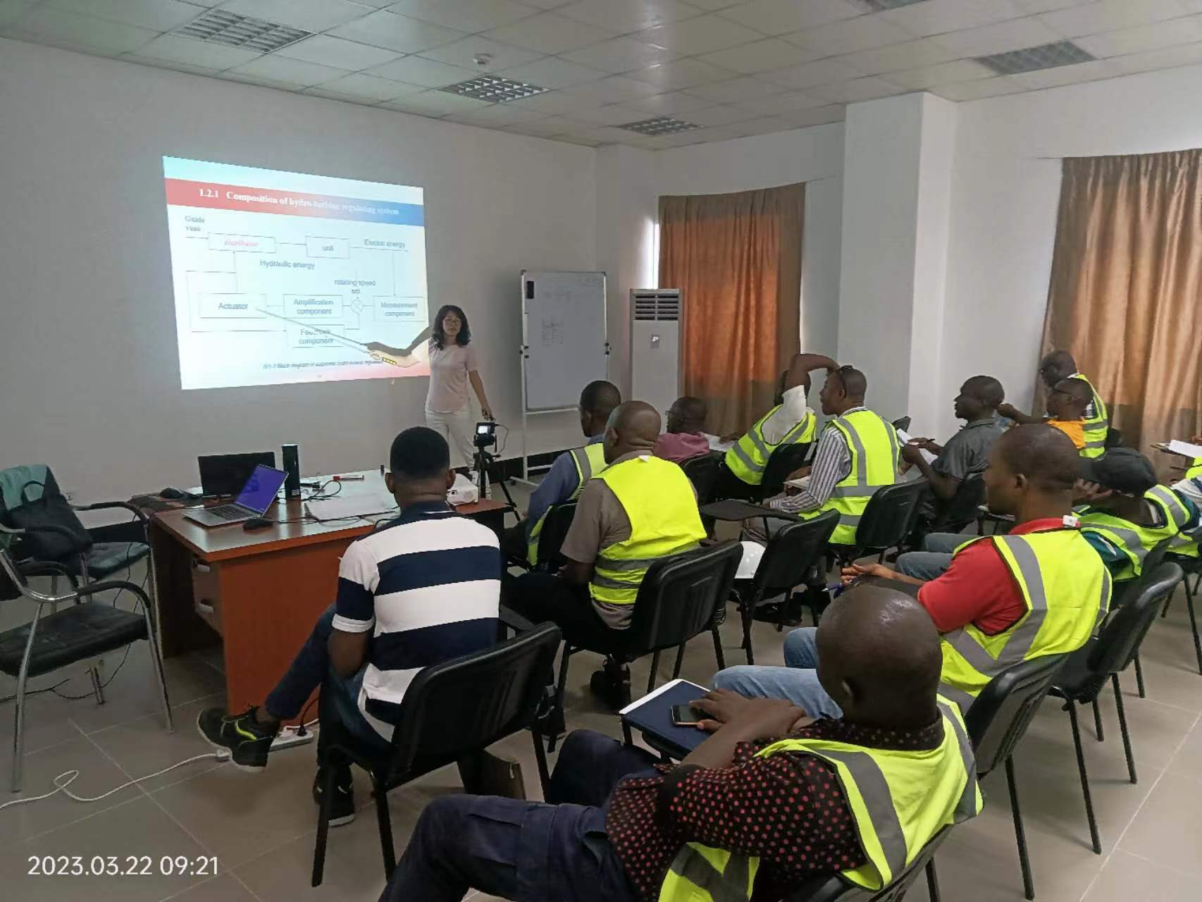 陈老师的专业技术同样在国际服务中发挥了作用。埃塞俄比亚、尼日利亚、坦桑尼亚均是与中国签下“一带一路”相关合作协议的国家,并利用中国“两优贷款”进行水电站建设,但这些国家的水电技术相对落后,电站建成后需要对电站技术人员进行电站运行、维护、检修等方面的技术培训。2019—2023年,陈老师先后3次赴非洲参加国际水电技术培训工作。内容包括水电站主、辅设备的结构、工作原理、运行与控制等,涉及流体、机械、液压、电气和控制等5个学科的内容。每次培训都赢得了非洲国家对中国水电技术的钦佩与认可,为祖国、为乐鱼争得了荣誉。