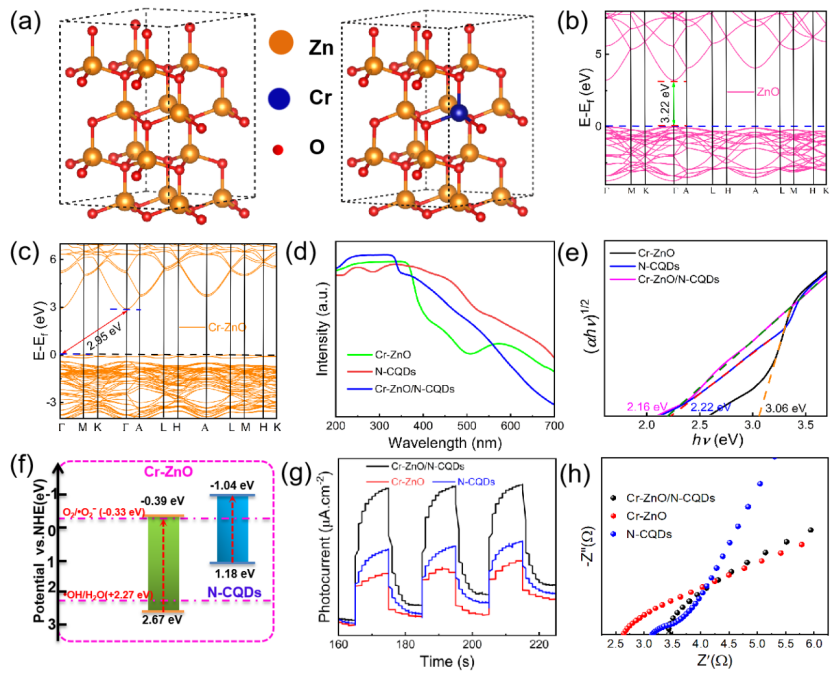 刘璐老师长期致力于绿色、低成本、高效、新型光电催化剂的研发及应用研究,并取得了优异的研究成果。该研究中采用简单的微波法和水热法,制备了光催化剂Cr-ZnO/N-CQDs。Cr-ZnO/N-CQDs不仅有效地提高了光生载流子的分离能力,阻碍了电子—空穴对重组,而且加快了光生电子转移速度,从而提高了光催化能力。该研究为氧化锌光催化剂在能源转换、环境治理等领域的进一步发展奠定了坚实的理论和实践基础。