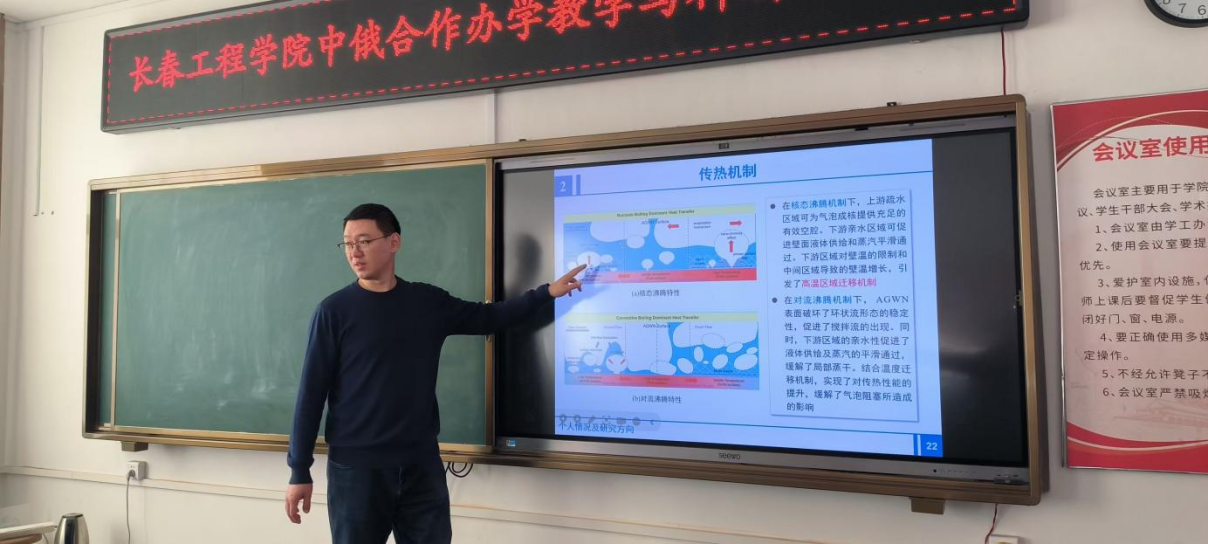 我校与俄罗斯南俄国立技术大学的中俄合作办学本科教育项目—能源与动力工程专业开展已近十年时间。为了进一步加强中俄合作办学项目的内涵建设,近日,能源动力工程学院举办了以“推动学术交流,深化科技合作”为主题的中俄教师学术交流研讨活动。会上,中俄双方教师结合各自的科研方向分别作了学术报告。