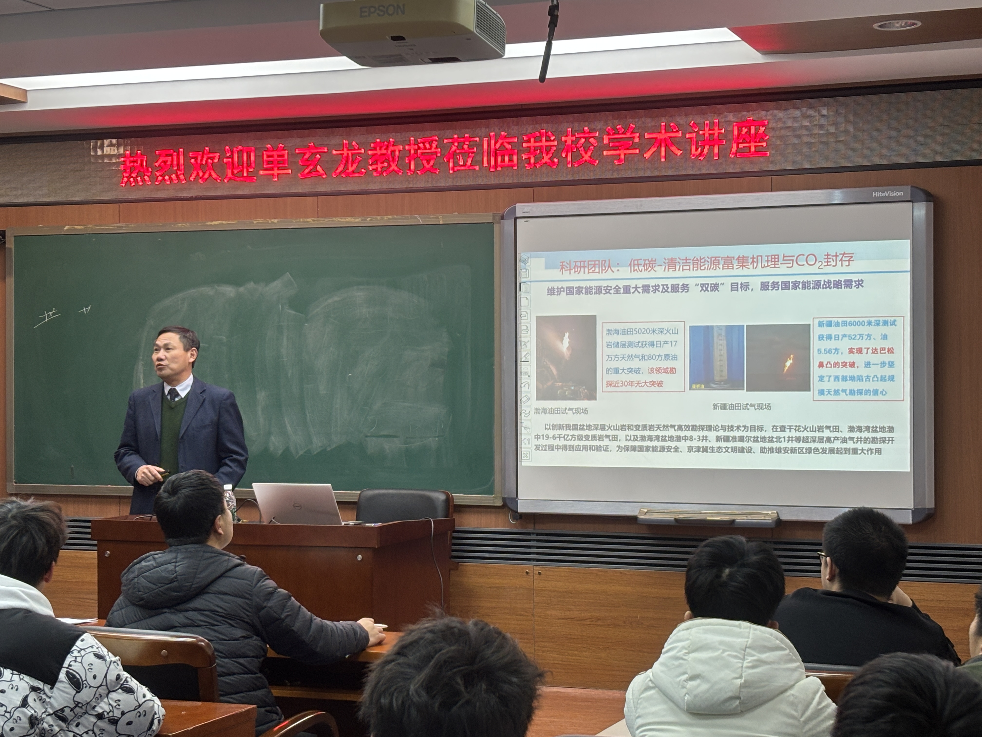2024年12月10日下午,应勘查与测绘工程学院邀请,吉林大学地球科学学院长单玄龙教授来我校做了题为“探索地学奥秘 服务国计民生”的专题讲座,讲座在湖东校区第一教学楼226学术报告厅举行,会议由资源与环境工程系系主任张成主持,学院师生代表共计80余人参加了此次讲座。