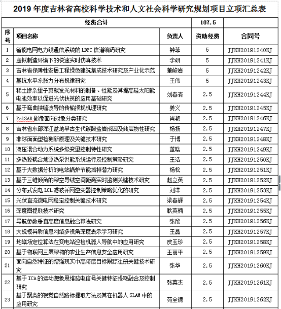 近日,2019年吉林省高校科技与社科“十三五”科研规划项目经乐鱼推荐,专家网上盲审、会议评审、网上公示,以及省级教育和财政部门审核复议,经研究获得批准立项。我校申报科研项目149项,获批46项,其中科学技术项目33项,社会科学项目13项,共获批科研经费107.5万元。