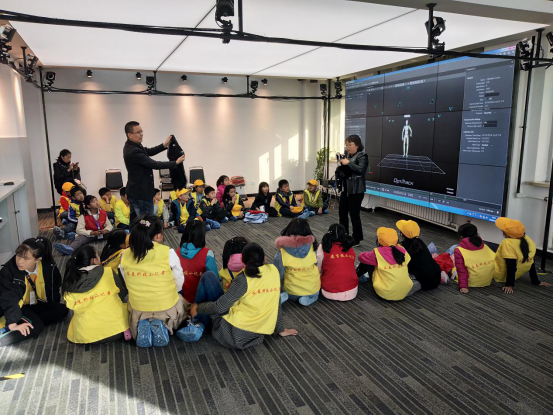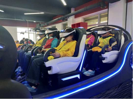 活动中,实验室副主任张素莉教授详细介绍了虚拟现实技术、实验室的概况以及实验室技术成果,并带领小记者们体验了9D座椅、行走平台等。孩子们争先恐后地排队,体验VR技术的神奇效果,兴奋不已、气氛热烈。