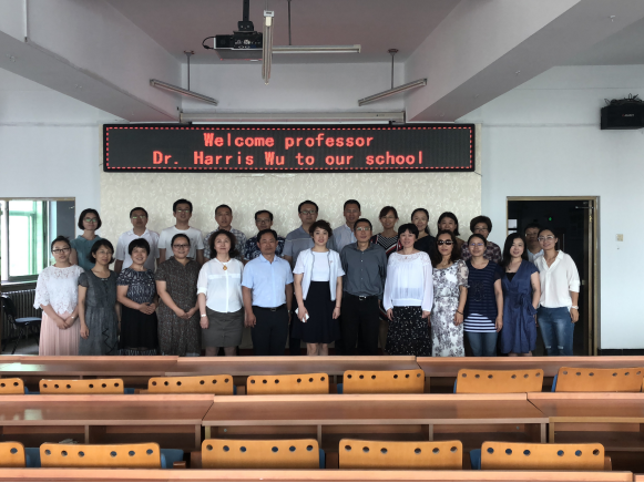 7月5日上午9:00湖东校区第二教学楼2613室,我校管理学院、吉林省城市建设发展研究中心、吉林省房地产研究中心、吉林省PPP研究中心联合邀请美国老道明大学Harris Wu教授来我校做《Uncovering the Intellectual Evolution of Decision Sciences Journal and Decision Support Systems – A Comparative Study》及《Starting Research in a New Field 》的学术报告。管理学院王莉院长主持会议,我校部分教师及研究生参加了此次报告会。